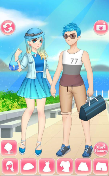 动漫高校情侣是一款模拟装扮类游戏,想要成为一名时尚达人么,在这里可以练习你的化妆技巧和穿衣打扮,在游戏里有着可爱的角色日系风格,可以自由搭配角色的服装,变成最潮流的时装,随心搭配出你的Fashion Style,游戏里可以轻松赚钱,服装,首饰任君购买,快来体验吧!