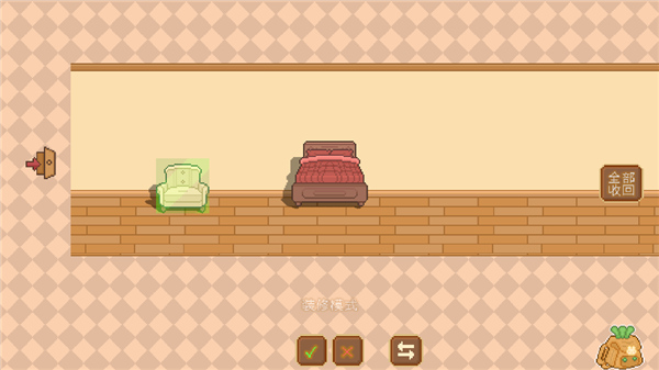 5、发现屋子空荡荡?打开背包,使用初始赠送的家具进行首次装修;