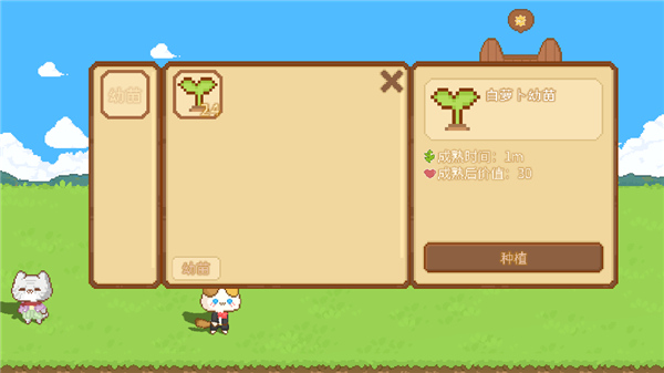 10、选中已放置的花盆,进入作物选择界面,点击所需种子即可播种;