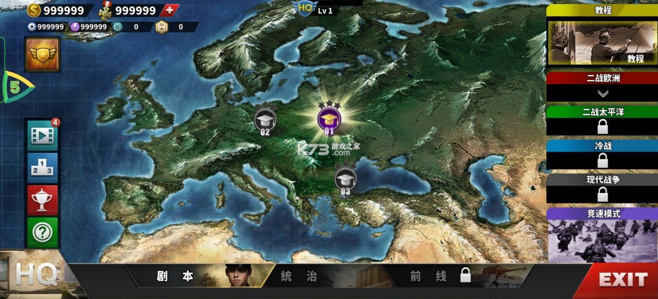 一战满级版,通过教程可获得满级资源和等级全满