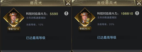 这时,才到了各位新手主公造兵提升战斗力的时机。兵营升到10级时,可以建造四级兵。四级兵是所有兵里最合适的,省加速,省资源,而且后续确定了自己想玩的兵种,晋升士兵的等级,相对来说也方便。
