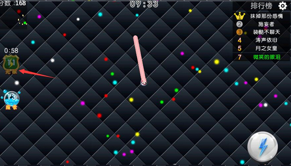 4、点击左边的无敌可以使你的蛇蛇获得暂时性的无敌;