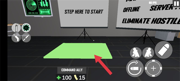 7、将角色控制到绿色区域就正式开始了。