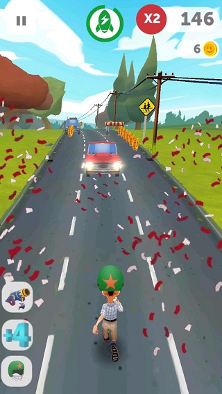 作为一款无尽跑酷游戏,如果只是单调地奔跑,未免显得过于乏味。随着游戏进程的深入,障碍物会越来越多,尤其是迎面而来的车辆数量增加且速度加快,给玩家带来了极大的挑战。这种设计让游戏始终保持紧张刺激的氛围。