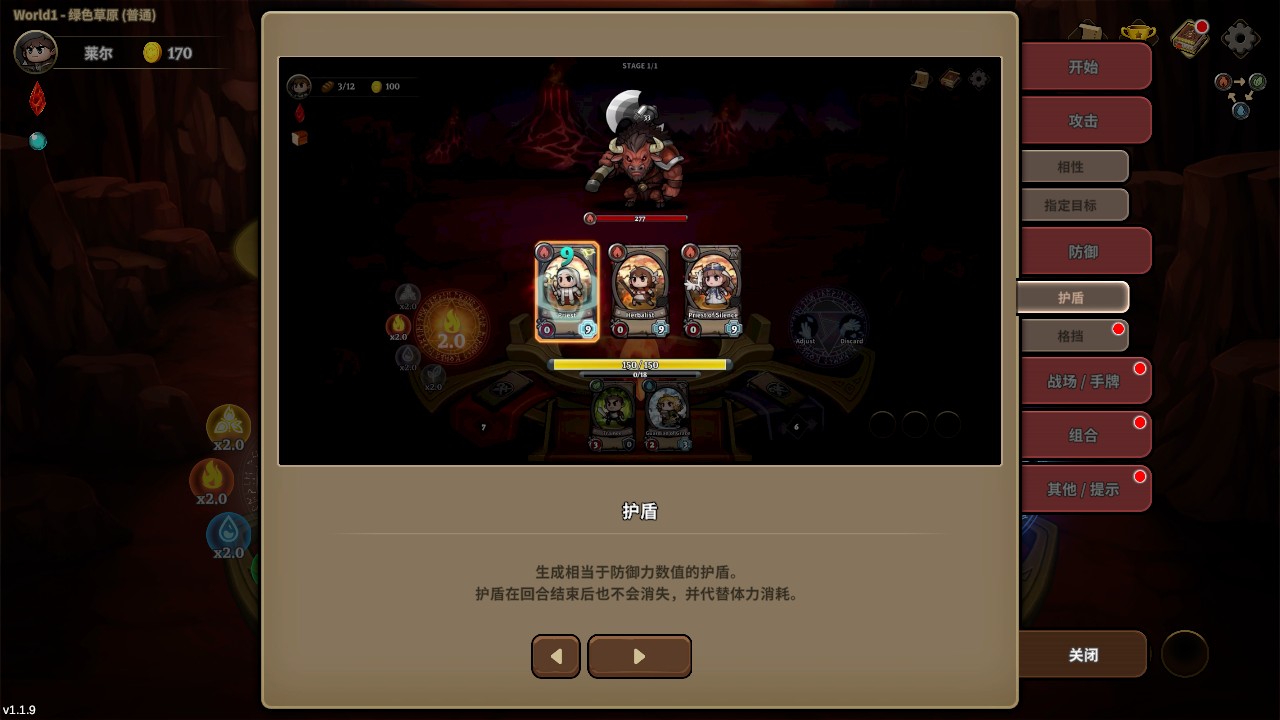 6、护盾的数值等于防御力,在回合结束后依然有效,并且能够代替生命值承受伤害。