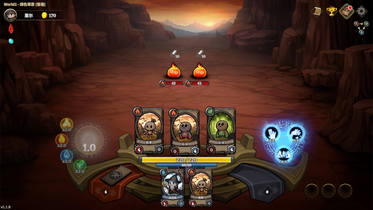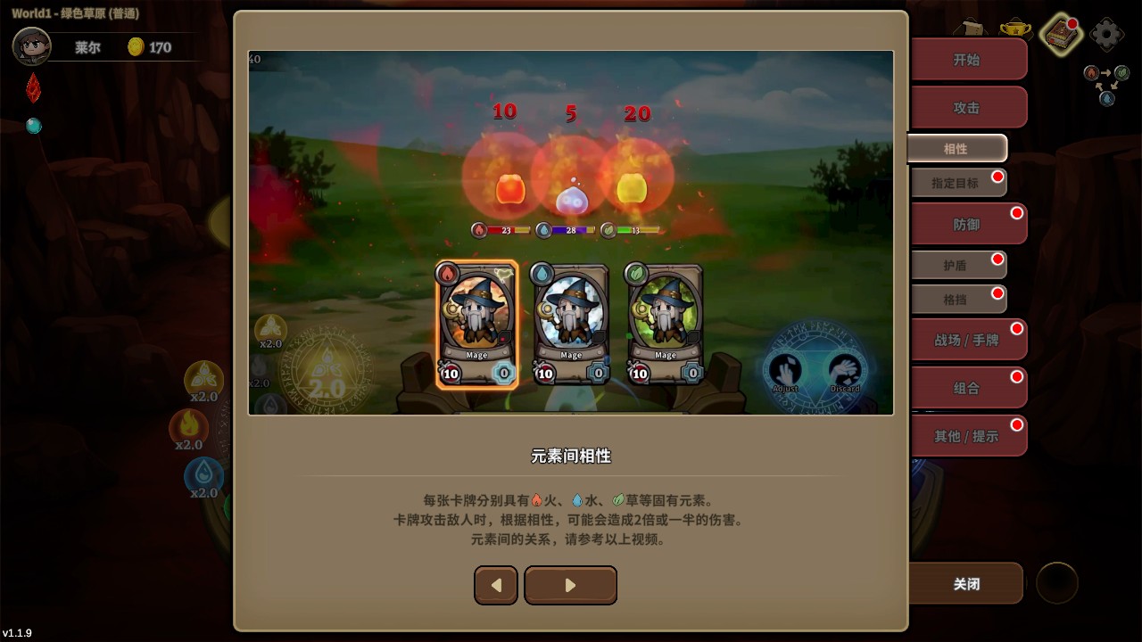 3、每张卡牌都带有独特的元素属性,如火、水、草等。攻击敌人时,会根据元素相克关系产生双倍或减半的伤害效果。
