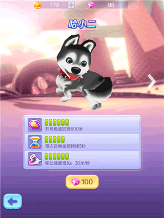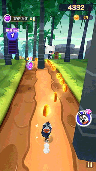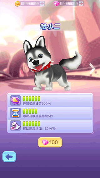 除了角色,坐骑也是提升分数的关键,当我们遇上紧急情况可以双击屏幕召唤宠物,召唤出来后我们是直接进入无敌冲刺状态的,而且我们还会有吸铁石效果,有效提升我们的分数。