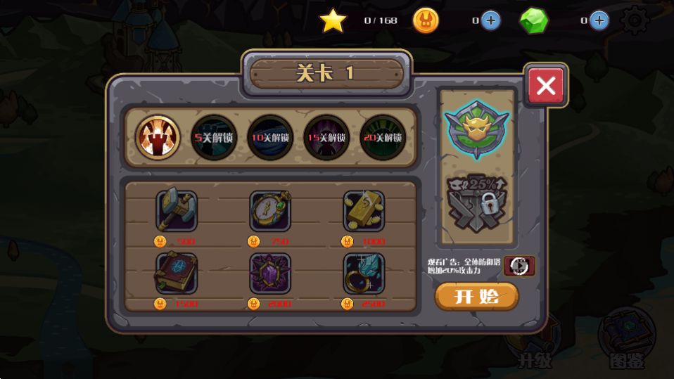 建造塔楼,雇用防御者,选择升级并防御水晶。