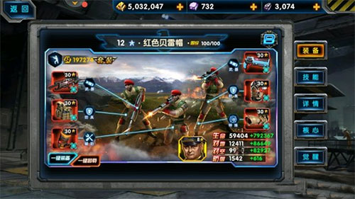 4、游戏包含40余种高科技兵种、100余种各具特色的装备部件、10余种可以左右战局的指挥官技能