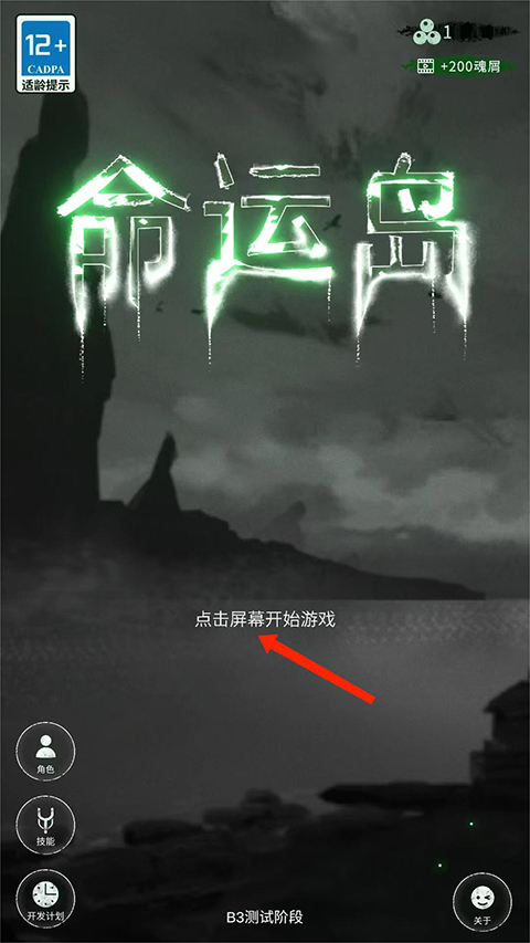 1、打开命运岛手游,点击屏幕开始游戏,
