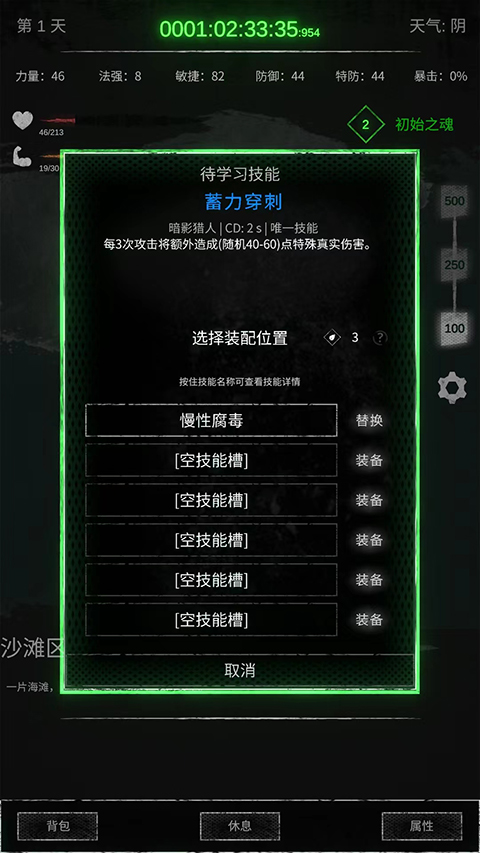 8、在技能槽中可以替换和准备需要的技能,