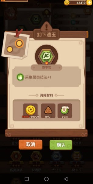 5、遗玉搭配建议:装配两块提升菜肴采集技法的遗玉。