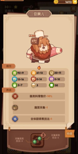 3、培养价值:是玩家初期优先考虑升满心法盘的厨师。