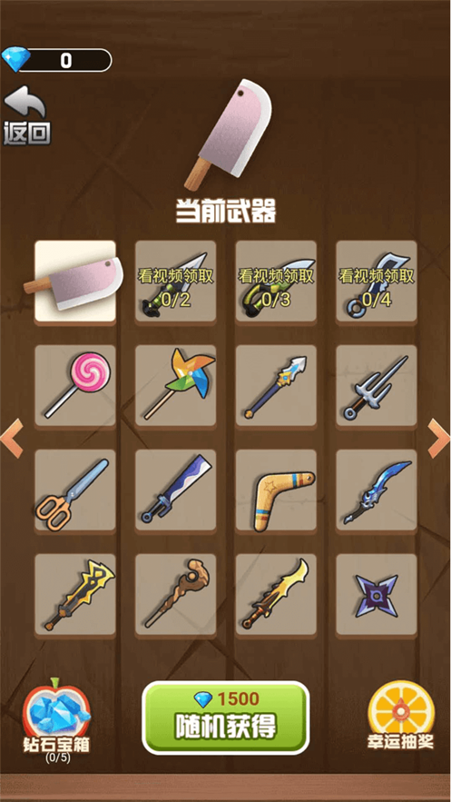 3、你可以自由切换不同类型的飞刀武器,在每一次投掷中感受精准命中带来的成就感,尽情享受切水果的畅快感吧!