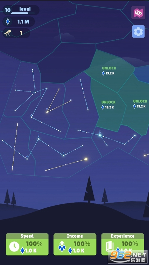 趣味的放置养成游戏,玩家可以利用线条来链接各种星星,全部连接后可以解锁新的星域,不断的解锁,获得一片广阔的星系和宇宙,喜欢的朋友可以下载试试。