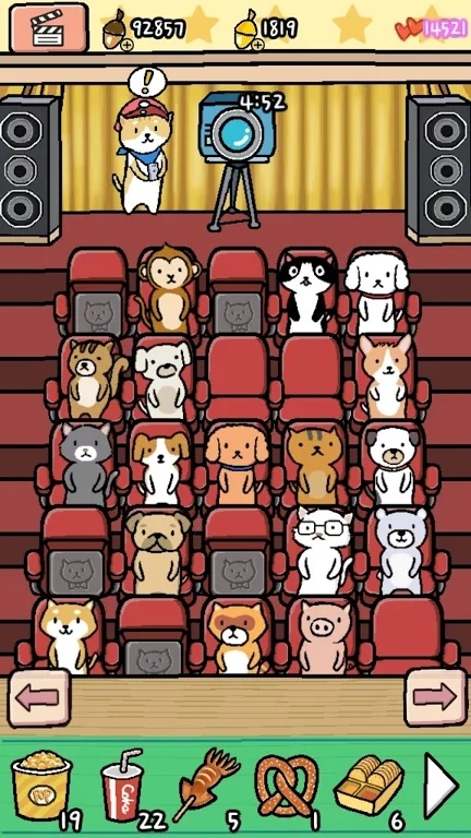 1、当放映厅开始播放电影时,动物们会入场并支付橡子作为门票费用;