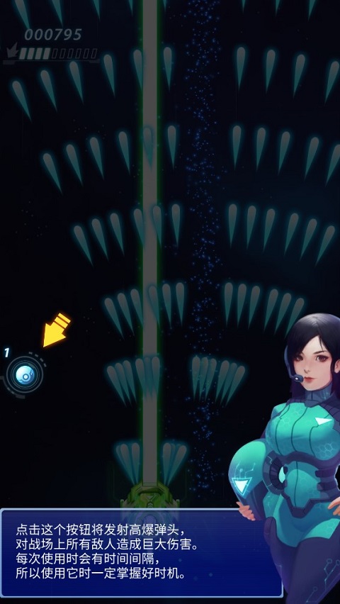 点击左侧这个按钮将发射高爆弹头,对战场上所有敌人造成巨大伤害。每次使用时会有技能冷却,所以使用时一定要掌握好时机。