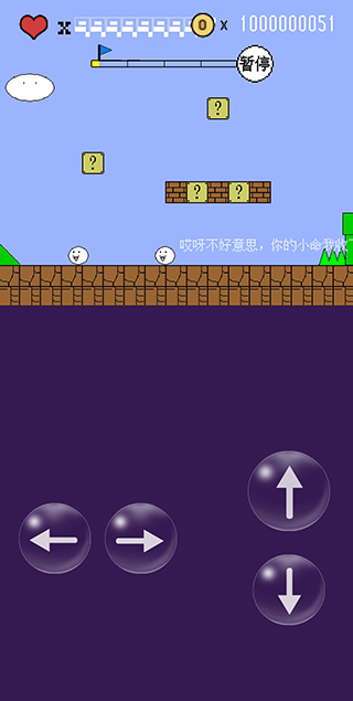 角色形象搞怪魔性,令人忍俊不禁。游戏中,通过简单的左右键控制角色移动,点击上键实现跳跃动作。