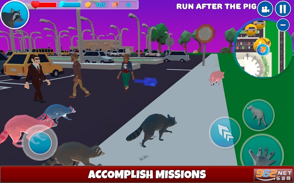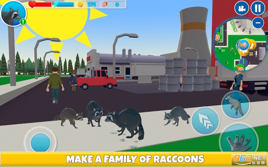 在这个模拟器中,您将扮演浣熊。您将探索大城市和周围的森林来寻找冒险。为了在城市中生存,你需要喂养浣熊并确保它不会遇到麻烦。森林里也有很多危险的东西。主要的危险是掠食者!为了让浣熊成长并变得更强壮,你需要帮助其他浣熊。