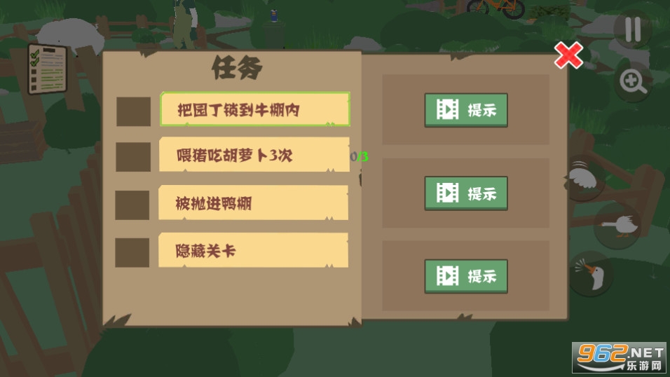 2、利用场景和道具,让鹅更好的躲避追逐者的追踪,完成任务,发挥鹅的捣蛋潜能。