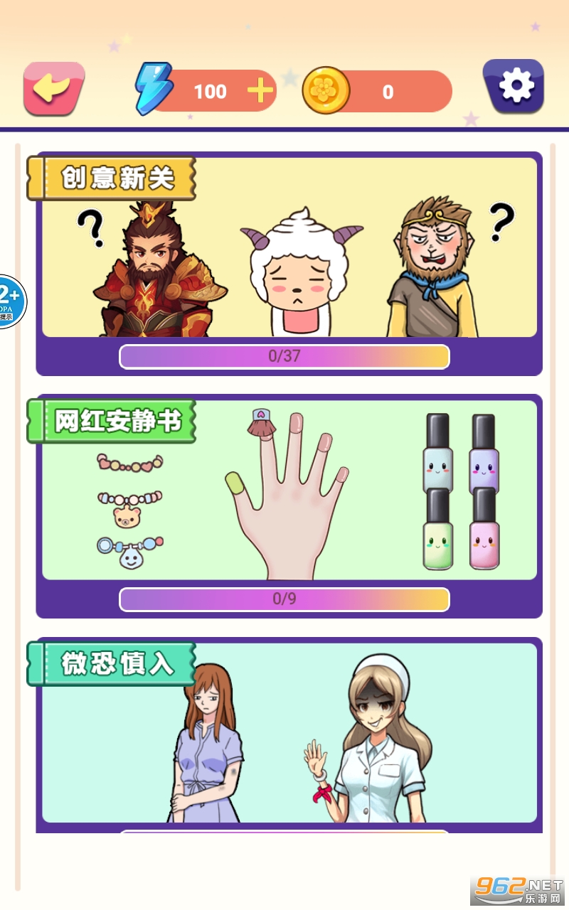 打开游戏后,会先进入主页面,主页面上有任务关卡、任务类型、任务进度、个人信息和设置等选项。