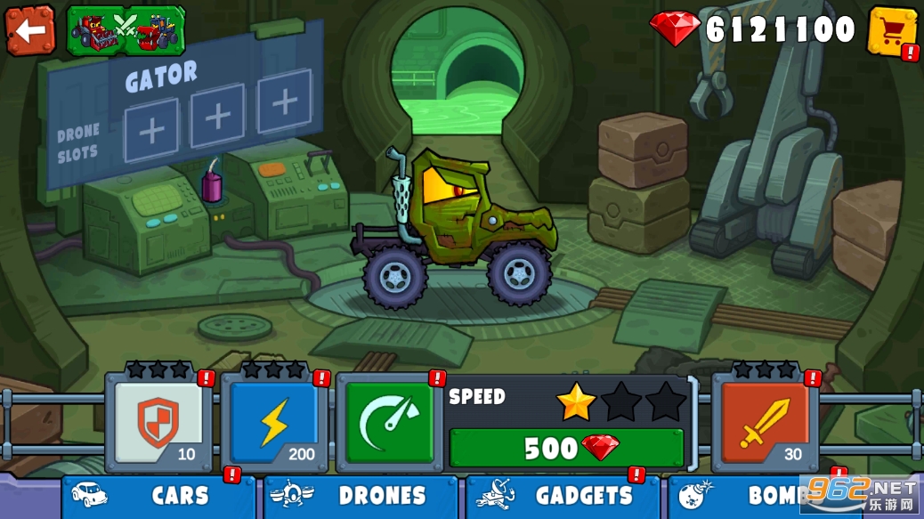 2、疯狂车吃车4游戏中一共有二十多中各种各样的汽车,你可以任意选择一辆。