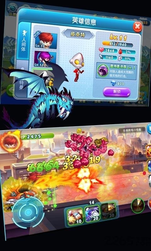 2.玩家身为地球保护者,通过奥特曼变身,召唤伙伴等形式,阻止怪物的入侵,承担起拯救伙伴的责任。如此精彩的游戏,您又怎能错过呢?