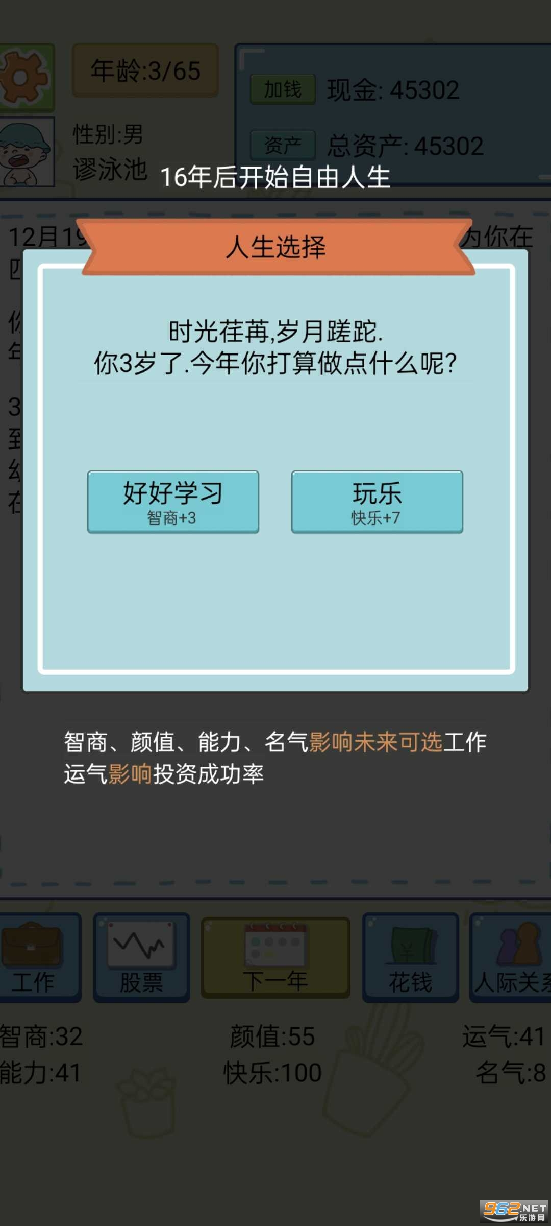 你将扮演主角体验不一样的人生,你需要做出各种选择来体验不同的人生,完成各种挑战来获得不同的奖励,做出合适的选择改变你的人生,一点一点增加来提升自己的属性,不断完成更多工作来逆袭人生走向巅峰。