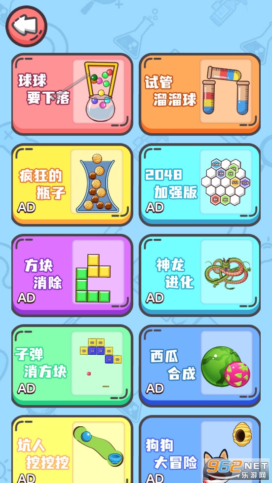 《一百种烧脑体验游戏》是一款多种小游戏合集,有着球球要下落、试管溜溜球、2048加强版、神龙进化、西瓜合成、狗狗大冒险等众多的小游戏,朋友们可以选择自己喜欢的小游戏去体验,各有特色,玩家需要开动自己的脑筋去完成一个个关卡。