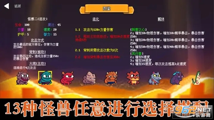 每个怪兽都有4种进化方向,可以搭配阵容可以的选择