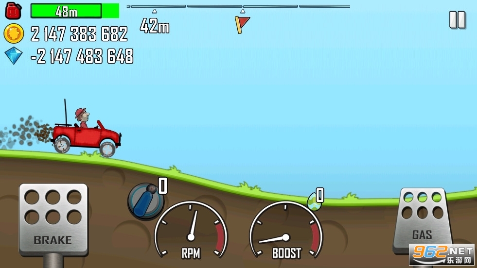 HillCilmbRacingv1.542下这个不用感谢我[委屈]中,玩家需要驾驶一款赛车跑在山地上,由于山地非常颠簸,需要玩家很好的把握油门和刹车,保证车子就不会翻过来,沿途可以收集金币,用来改造车子。