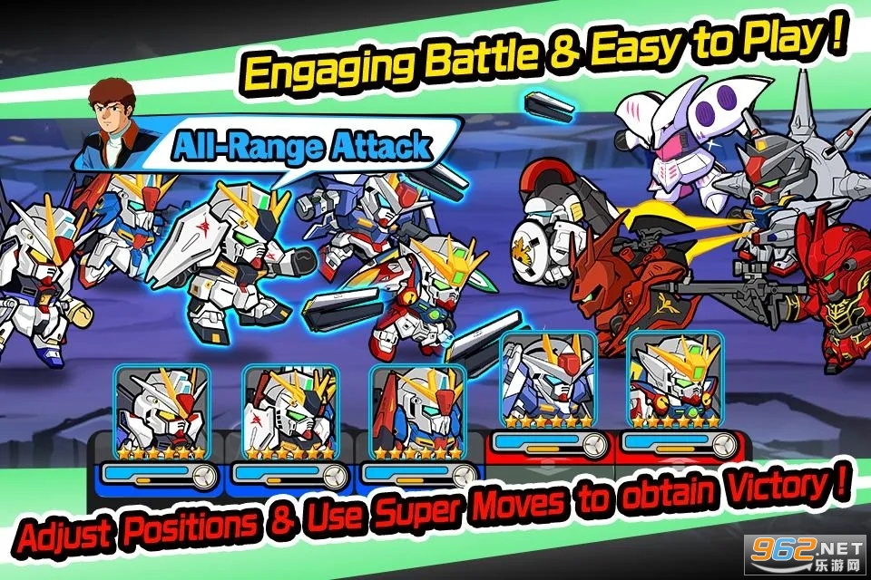提供了简单易玩的战斗系统,只需点击即可投入战斗。玩家可以控制强大的高达机体,展开策略性战斗,改变位置并释放华丽的技能。游戏中有大量任务和挑战,玩家可以与朋友一起合作完成任务,击败各种敌人,包括突袭首领。发展和编辑您的团队是取得胜利的关键,玩家可以培养MS、MA、飞行员和战舰,以使它们更加强大。