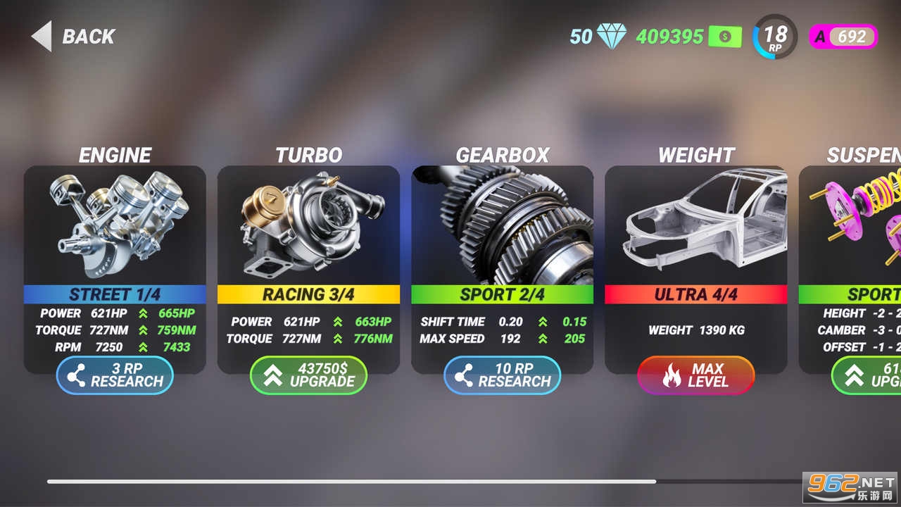 详细的汽车调教系统,允许玩家定制汽车性能。