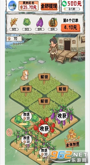 2、游戏的操作也很简单,我们只需要等待作物成熟,然后收割。