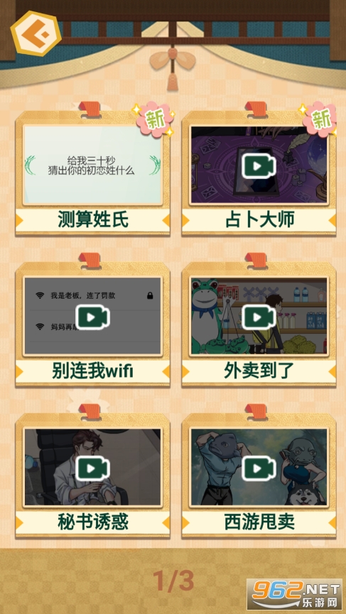 《爆梗大王冲冲冲游戏》是最近新出的一款趣味解谜闯关游戏,游戏拥有测算姓氏,占卜大师,别连我wifi,外卖到了,秘书诱惑,西游甩卖,课后温习,我的直播,看图猜明星等的呢关卡让大家挑战,画风精美,剧情搞笑奇葩,需要玩家颠覆常识,搭配常规才可以顺利闯关,快来试试!