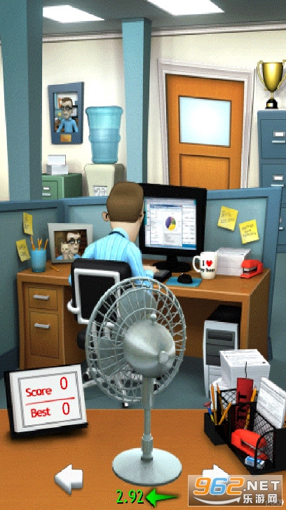 不过,你可以在手机上对里面的”同事”狠狠的发泄一番。在游戏中,你的办公室对面的同事看起来有点呆呆的,是不是要捉弄他一番呢?你可以向他扔各种东西,比如铅笔、订书机、咖啡吧、甚至是鸡蛋之类的。你还可以破坏他的办公桌,打翻他收藏的珍贵照片,造成他办公桌上的混乱。甚至你还可以抡起拳头,重击他的后脑勺,让他眼冒金星。 反正就是,你想怎么整就怎么整,看一次打一次!