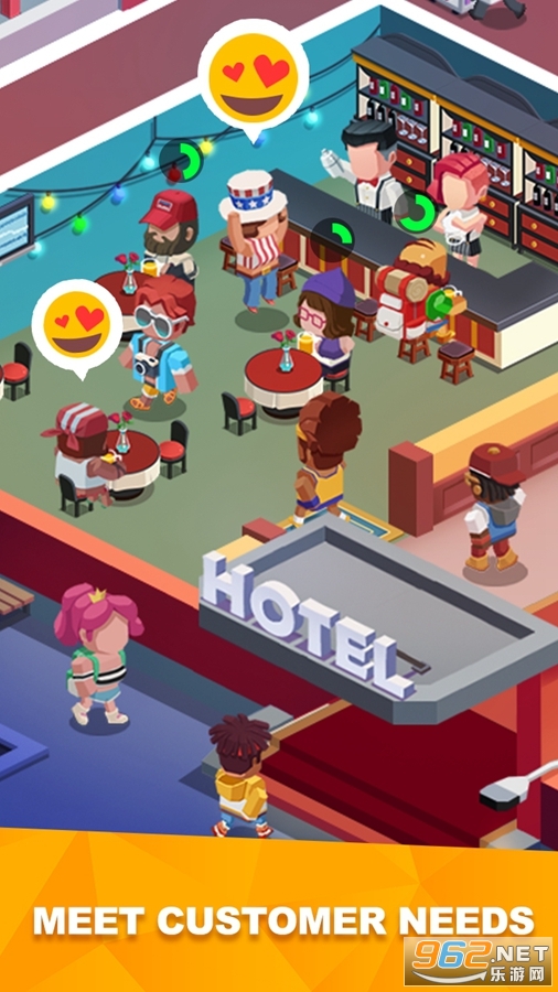 《西蒙酒店大亨游戏》(Sim Hotel Tycoon:Tycoon Games)是一款画面清新的模拟经营酒店的休闲手游,游戏的玩法包括酒店经营管理、客人接待、处理客人投诉等。你需要根据客人的需求,调整酒店的设施和服务,提高客人满意度,以此增加酒店收益。