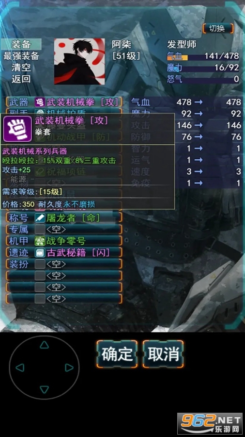 对了,每个角色都有专属的专精装备,穿专精装会增加攻击,记得要看一下角色的状态,分清角色是用的哪个武器