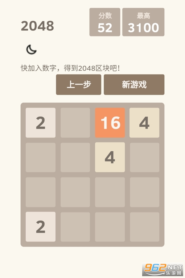 趣味的2048益智游戏,玩法非常的简单,玩家最好是将最大的数字固定在一个角落,然后一点点的去合成其他的数字,最后达到2048的目标,适合打发闲暇的时间,喜欢数字益智游戏的朋友可以试试。