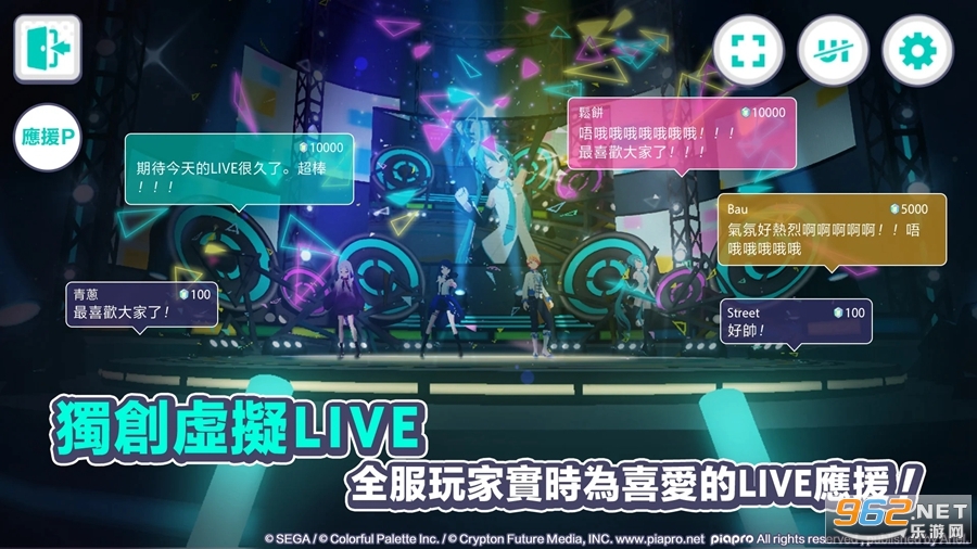 和其他玩家一同观赏虚拟LIVE吧!也可以和好友一起加入私人房间!