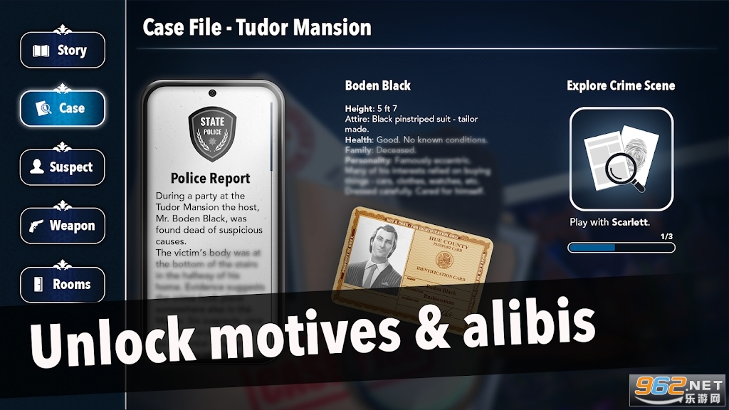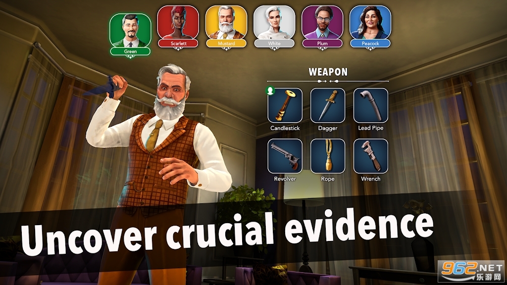 跟随你的嫌疑人穿过标志性的都铎大厦,一路揭开他们的动机和不在场证据。按照原来的规则进行游戏,或者尝试 Clue 独有的新调查格式。直接审问嫌疑人,依靠推理技巧找出真相。体验谜团,用你的方式解决谋杀案,成为你想成为的侦探!