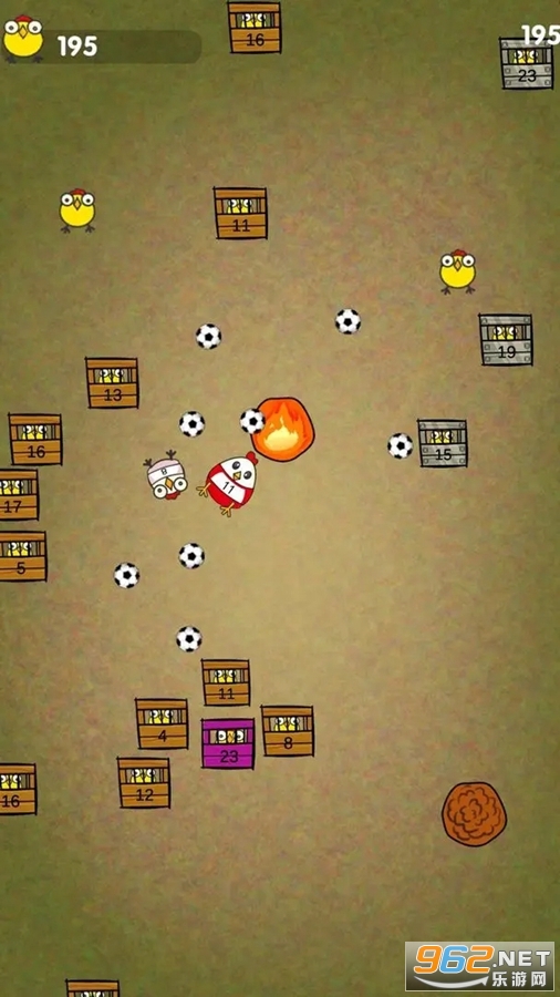 《鸡你太美战斗鸡游戏》是一款画面精致的魔性闯关休闲手游, 游戏中玩家的任务就是去解救被困的鸡,可以发射足球去撞击各种物品,每个物品上都有着数字,这个数字代表了物体的血量,可以升级强化提高撞击的攻击力,更快的去击毁这些数字物体。