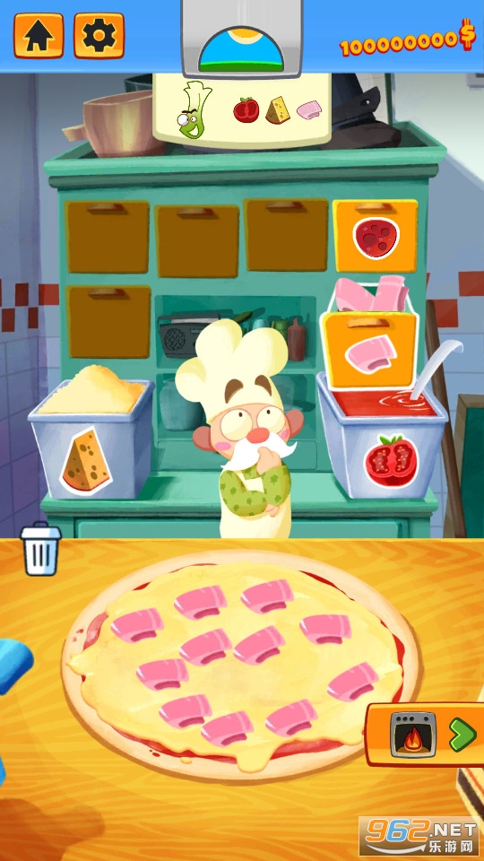 享受烹饪披萨的整个过程:推出披萨面团,添加所有食材,然后将其放入烤箱烘烤食物。披萨准备好后,将其交付给客户并领取奖励。
