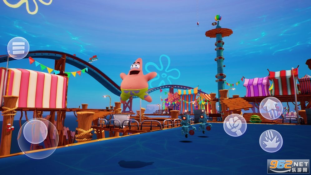 动画角色:游戏中玩家将扮演海绵宝宝、派大星和珊迪,不同角色拥有不同的玩法和技能,使用他们的特点来击败敌人