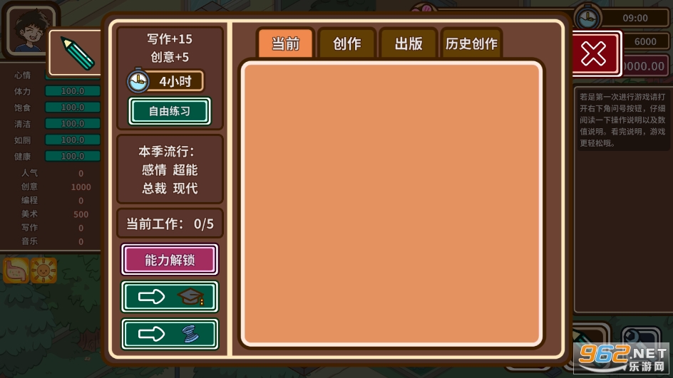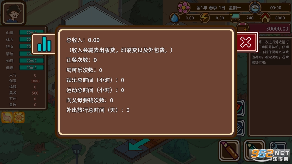 由于该角色的职业是编程职业,所以玩家需要尽可能地去参与各种技术的编程班提供自己的综合能力,这样在后续制作游戏的时候可以轻松很多,平时的时候也可以利用编程技能去赚一些外快,来弥补自己的生活费用。