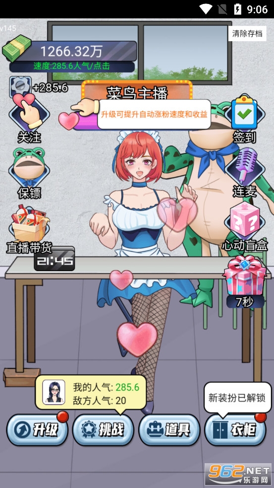 趣味的模拟游戏,玩家将培养一个人气主播,可以为主播点赞刷礼物,可以解锁各种道具升级直播设备,还有着大量的装扮可以解锁,将主播打造成自己喜欢的形象等,喜欢的朋友可以下载试试。