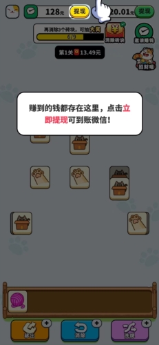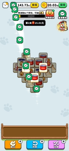 一款简单而有趣的益智休闲手游,玩家可以随时随地轻松畅玩。在游戏中,可爱的招财猫将引领您进入一个充满趣味的冒险世界。游戏采用了简单的消消乐玩法,同时也提供了高挑战性的关卡设计。只需点击三个或三个以上相同的方块,即可进行消除。快速解锁关卡,赢取丰厚的红包奖励,同时享受游戏的乐趣。不要错过这个让您赚零花钱的机会!