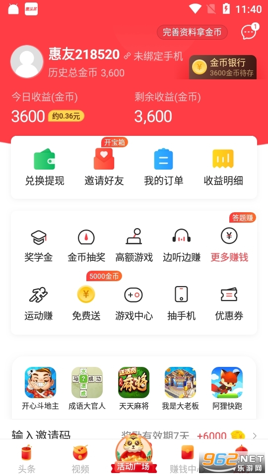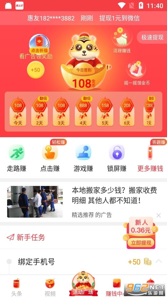 《惠头条安卓版》是一款能够赚零花钱的新闻资讯类手机阅读软件,不管你是在软件内阅读、分享还是邀请好友,都有丰厚的红包以及金币奖励等着你,金币是可以用来充值话费或者兑换你喜欢的实物奖品的哦,非常适合空闲时间比较多的宝妈以及学生党们使用!