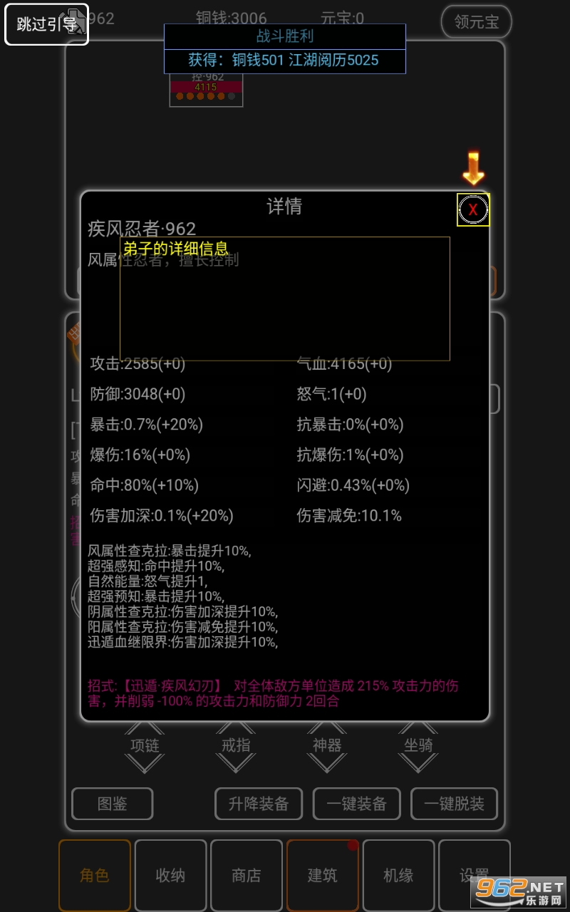 1、酷炫的游戏技能,每个忍者都有不同的必杀专属技能。
