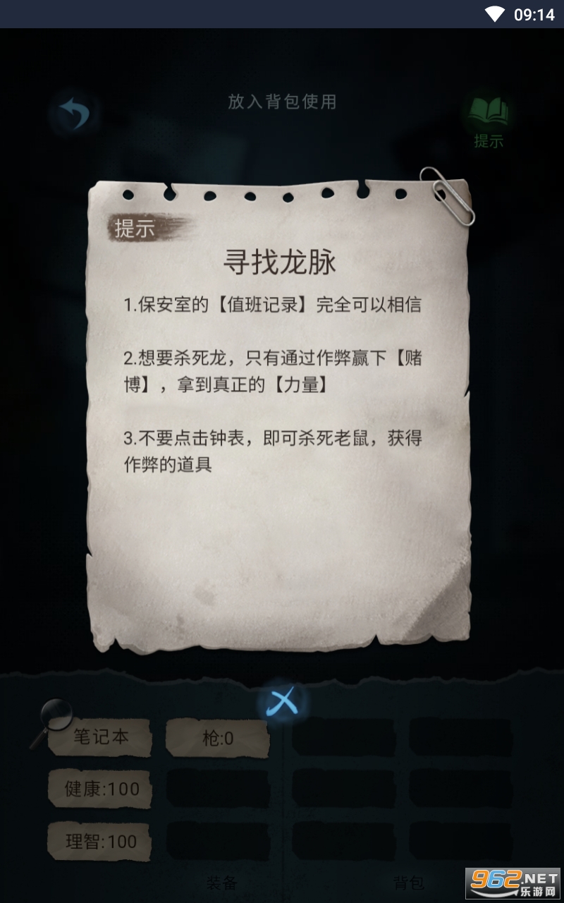 1、最重要的是让玩家获得愉悦的游戏体验和挑战感,各种线索需要你寻找;